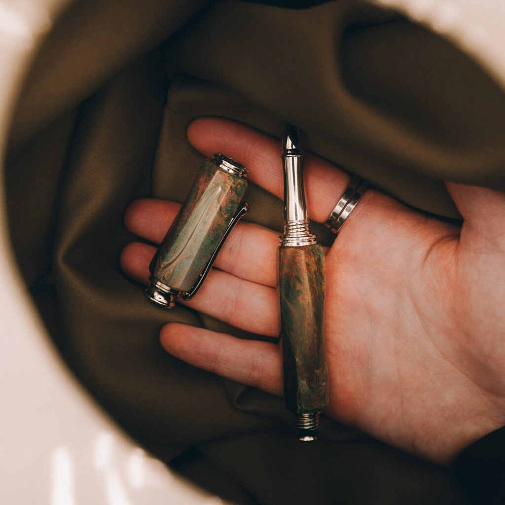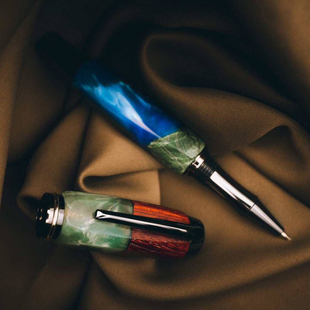 My goal is to create one-of-a-kind pens for you, tailored precisely to your vision. Whether you want to incorporate precious stones, stabilised wood, resin, or something else into your pen, I will make it happen.